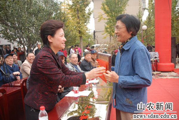 校党委秘书邢擅萍为得到华夏老传授协会“老传授科教任务良好奖”的孙兰珍传授授奖