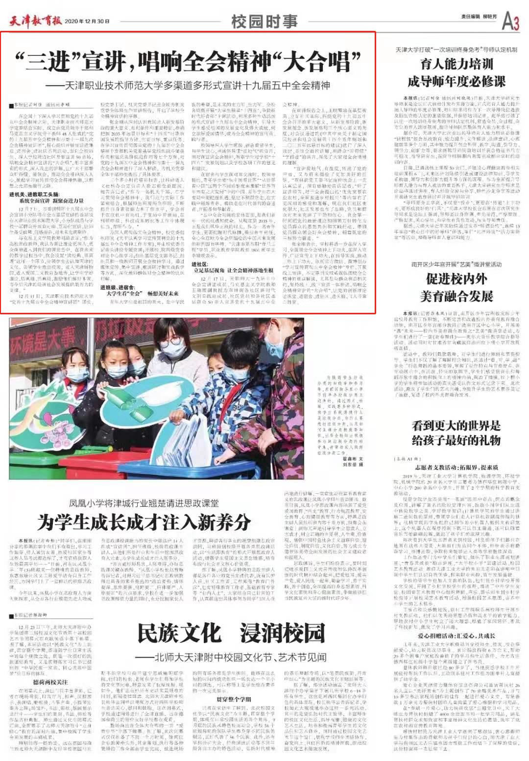 今日《天津教导报》以“‘3入’宣道,唱响齐会肉体‘年夜独唱’”为题报导rb88体育多渠谈多方式宣道党的109届5中齐会肉体结果。