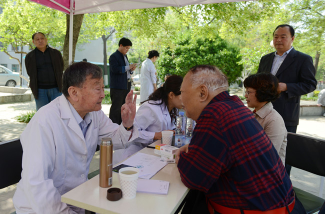4月20上昼,由中原老迷信技能任务者协会主理的义诊举动正在北校区家族院旭日白广场举办,很多中暮年教人员工及家族慕实而去,请老行家问诊评脉。副校少嵇景涛代替黉舍探